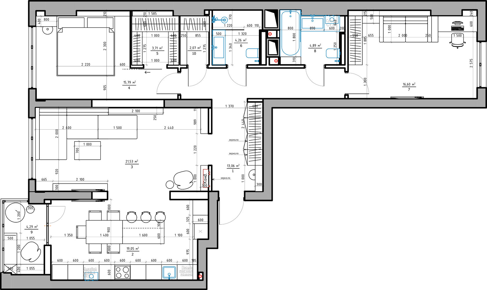 • План розміщення сантехніки • План розміщення меблів • План оздоблення стін та підлоги • План розміщення світильників • План розмітки електрики